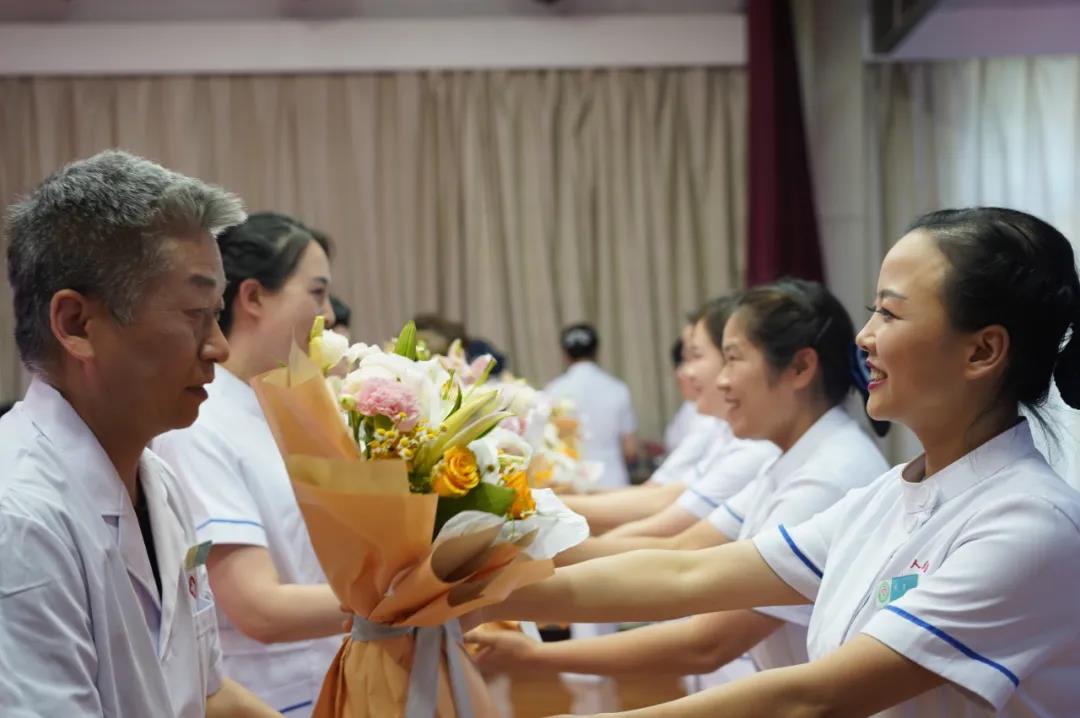 在纪念“5.12”国际护士节之际,为了表彰和奖励一直以来在护理工作岗位上辛勤工作,无私奉献的护理工作者,在我院红五月的表彰大会上,院党委书记李凌,院长、市急救中心主任李竹林为五位护龄满30年一直致力于临床一线工作的护士颁发了鲜花和奖章,充分肯定她们为护理事业发展作出的不懈努力及所取得的成绩,同时希望全院护理人员继承和发扬老一辈护理工作者爱岗敬业的优良传统和奉献精神。