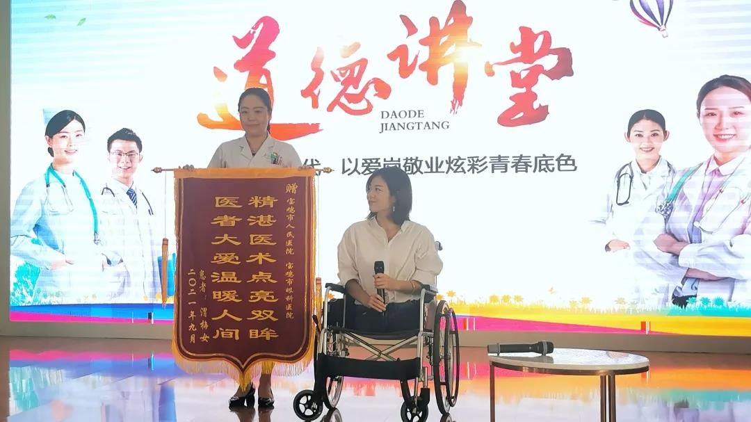 奋斗百年路,启航新征程,在实现“两个一百年”奋斗目标的历史节点上,在举国上下深入推进党史学习教育的关键时刻,9月11日上午,在院党委的指导下,院团委牵头开展了以“追梦时代,爱岗敬业炫彩青春底色”为主题的宝鸡市人民医院2021年第三期道德讲堂。党委书记李凌、党委副书记、纪委书记王立军、党办主任张永丽莅临指导,活动由院办副主任、团委书记谢芳主持。来自医院各科室青年医护人员代表、团员干部、青年文明号号长参加了活动。